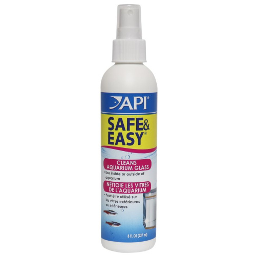 API Safe and Easy Aquarium Cleaner comes in a convenient bottle with spray trigger. Just spray on and wipe off! This safe, powerful cleaner cuts through white crusty mineral deposits commonly found on inside and outside aquarium glass.