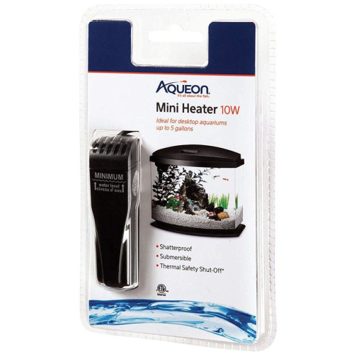 Aqueon Mini Heater is a fully submersible, shatterproof heater ideal for smaller aquariums up to five gallons in size. This mini aquarium heater features a thermal safety fuse that shuts off the heater when it dries out or looks like it may overheat.
