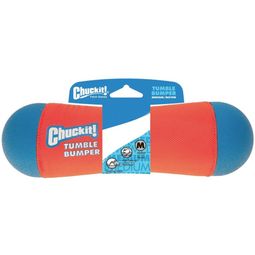 The chuckit! tumble bumper is an extension of the tug, shake or toss line. random bounce tumbling action on land, high floating easy visibility on the water. adds excitement to the game with its unique tumbling, high floating action. soft yet durable, your dog will love playing fetch & retrieve with the tumble bumper dog toy. random bounce tumbling action keeps your pup guessing and entertained. multi-layer construction for added durability and the bright color gives increased visibility and helps to prevent the toy from getting lost. made of soft but sturdy material thats easy on a dogs mouth.