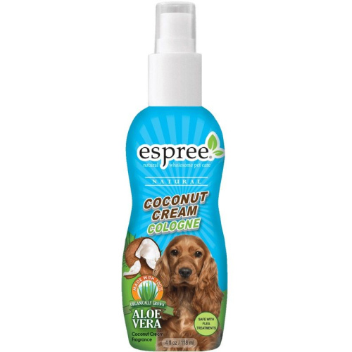 Espree Coconut Cream Cologne neutralizes odors and conditions coats, with natural, fast acting ingredients that will keep your dog smelling fresh for hours. Made with 100% organically grown Aloe Vera and safe to use with flea treatments.
