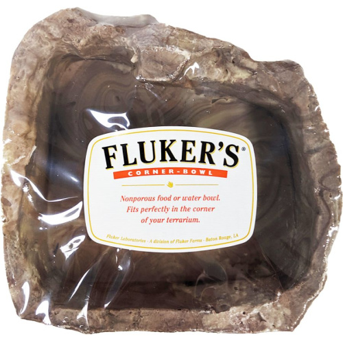 Flukers Reptile Corner Bowl provides a space-saving feeding area for any reptile, amphibian, or invertebrate. Designed to fit flush against the corners of your terrarium and blend in with the scenery, this bowl may be used for food or water.