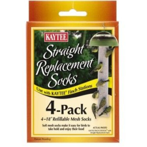 Kaytee Straight Replacement Socks are for use with Kaytee Finch Stations. Soft mesh socks make it easy for wild birds to take hold of seed and enjoy their food. Straight Replacement Sock is an eighteen inch refillable mesh sock.