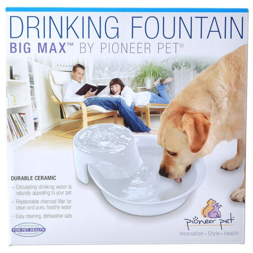 The Pioneer Big Max Ceramic Drinking Fountain sets a new standard for pet waterers. Its extra wide bowl provides a large drinking area to accommodate any size pet, including most dogs and multiple cats. The fountains replaceable charcoal filter means your pets water is always clean and pure.