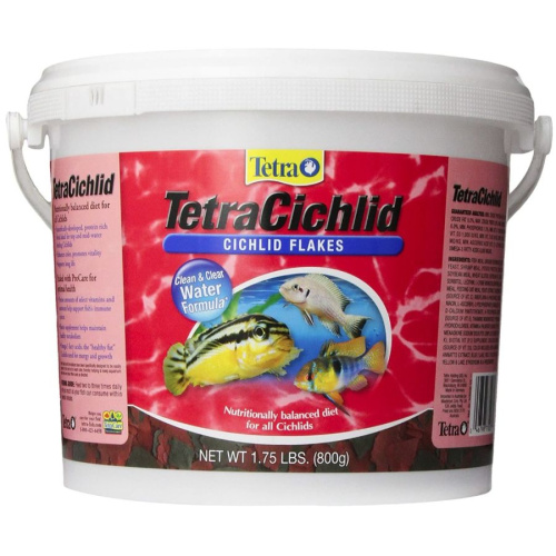 TetraCichlid Flakes provide nutrition and energy for the well-being of top and mid-water feeding Cichlids, including immature South American and Central American Cichlids and all African Cichlids. The flakes stay firm and won't disintegrate when fish strike them.